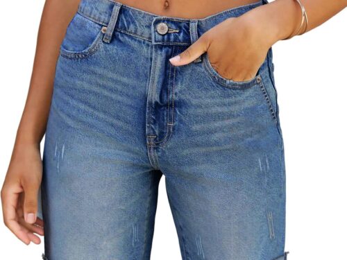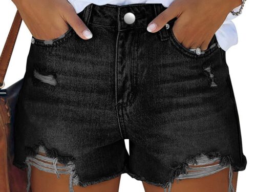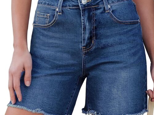 Women’s Casual Summer Denim Shorts Mid Waisted Stretchy Ripped Jean Shorts with Pockets