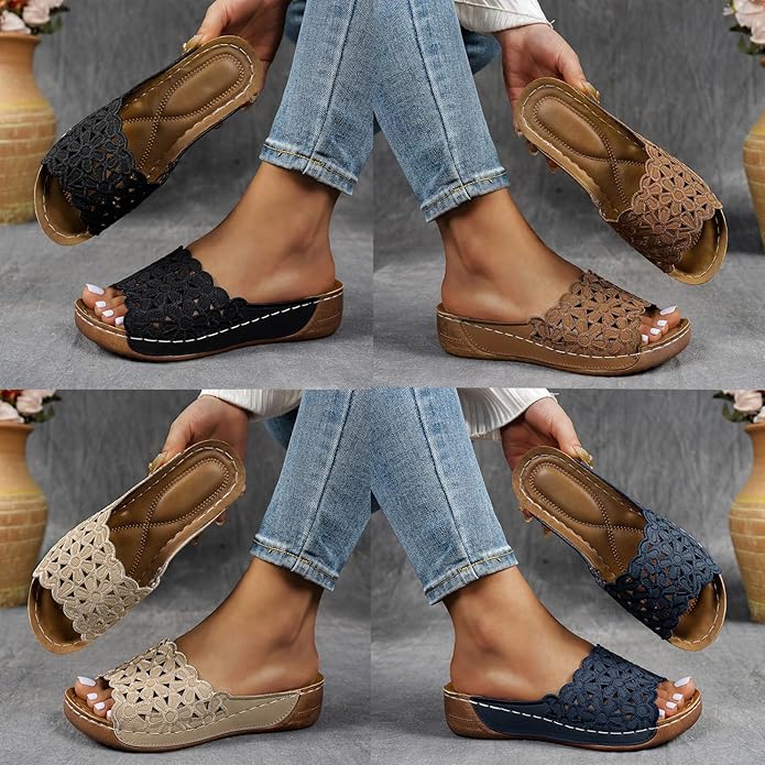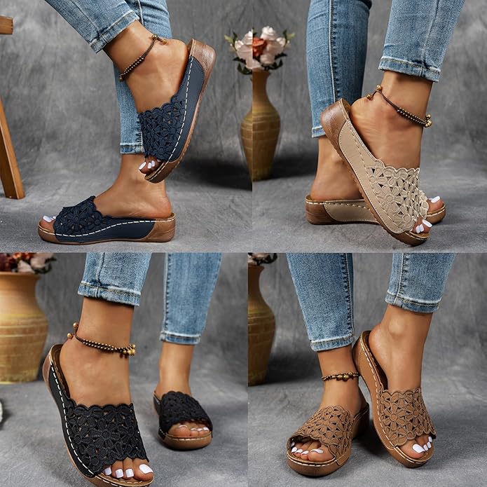 Breathable orthopedic open-toe slippers for women, with soft cushioning. Arch support