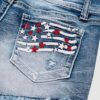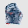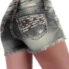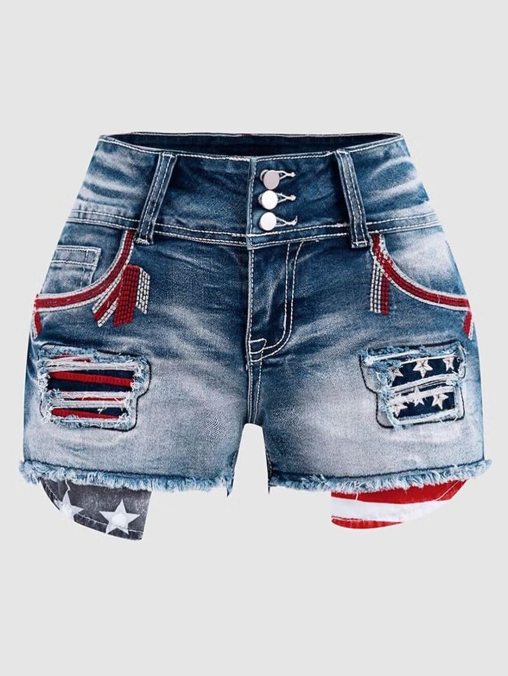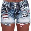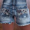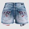Women High Waist American Flag Button Fly Raw Hem Denim Shorts