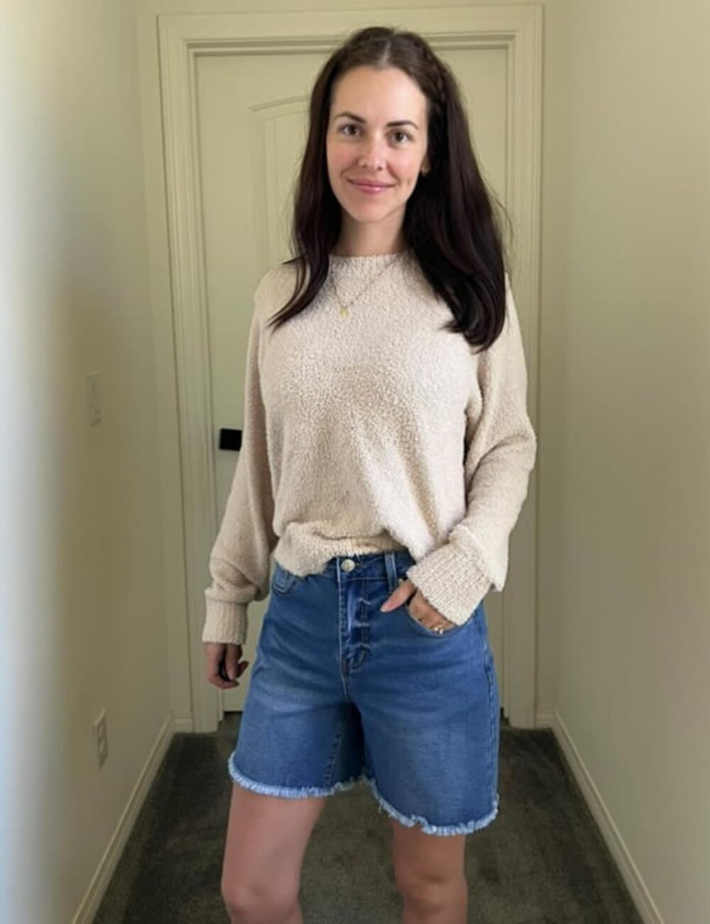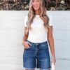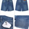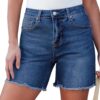 Women Trendy High Waisted Stretchy Denim Summer Raw Hem Mom Long Shorts Cutoff Jorts