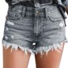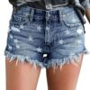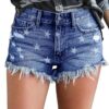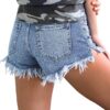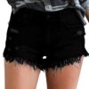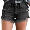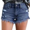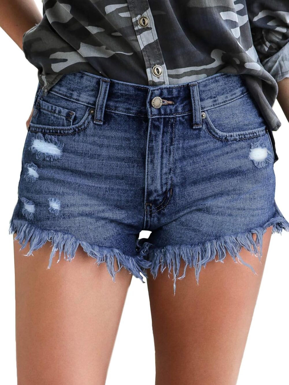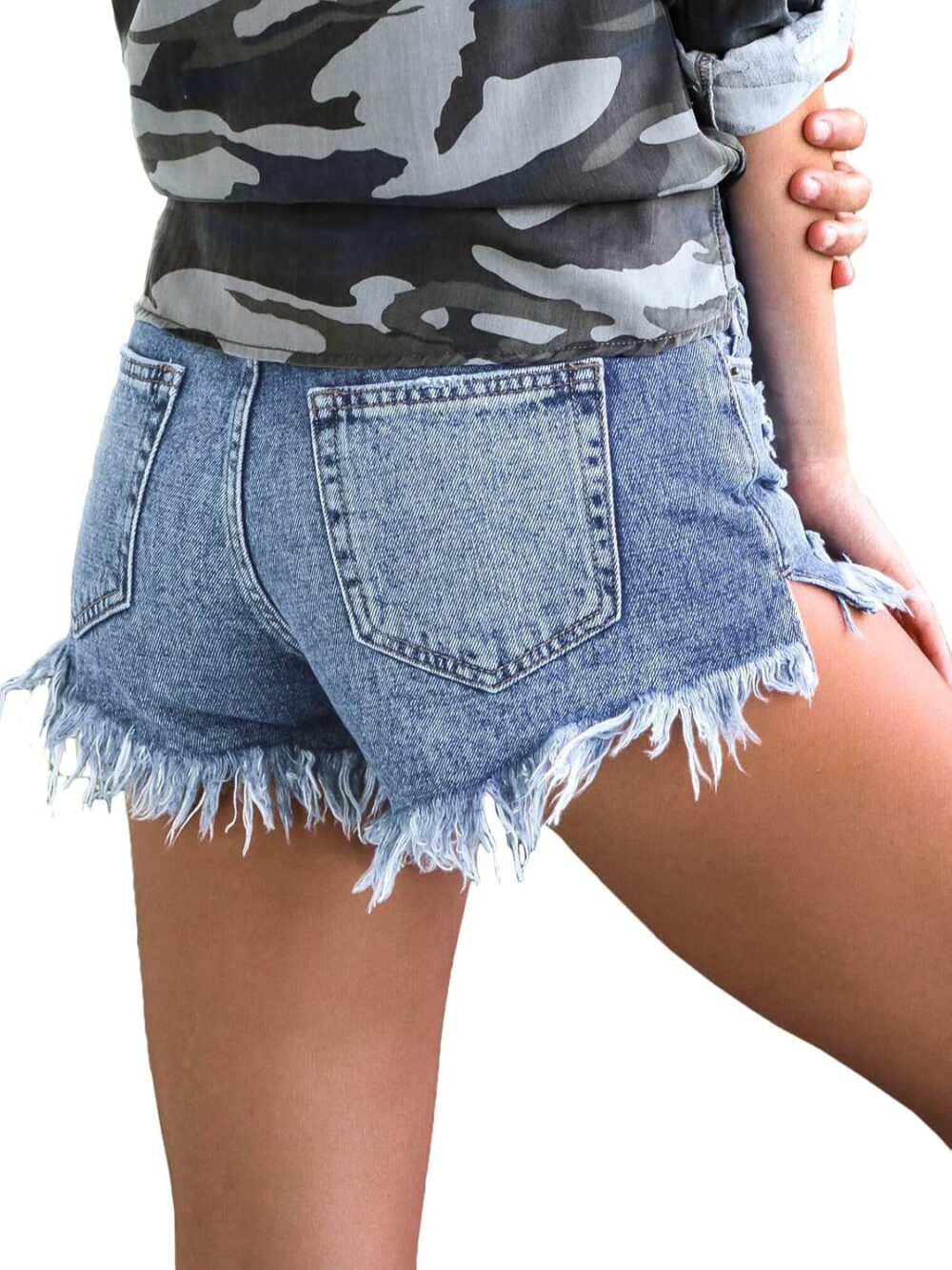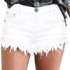 Womens Jean Shorts Mid-Rise Frayed Raw Hemline Ripped Denim Short Jeans